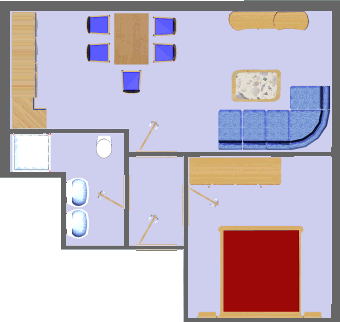 Die Wohnung Bienenstock für 2 Personen (4 wenn im Wohnraum geschlafen wird) bietet ausreichend Platz mit einem gemütlichen Schlafzimmer mit Doppelbett, sowie einen Kleiderschrank. Vom Balkon oder von der Terrasse hat man eine schöne Sicht in die grüne Umgebung. Im Wohnraum finden Sie neben einer Doppel-Schlafcouch auch einen Flachbildfernseher mit Sat-Receiver und Radioempfang über den auch Multimedia-Dateien über USB abspielbar sind. Hier lassen sich gemütliche Abende genießen. In der, im Wohnraum vorhandenen, voll ausgestatteten Kochnische mit 4-Platten Ceranfeld und Backofen, Spülmaschine, Kühlschrank, Wasserkocher, Toaster und Kaffeemaschine, lassen sich leckere Speisen zaubern, welche am Esstisch mit 4 bequemen Stühlen verzehrt werden können. Im Bad findet man eine Dusche, ein Doppelwaschbecken mit großem Spiegel, Kosmetikspiegel und Fön, sowie eine Toilette.