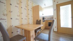 Die Wohnung Starenkasten für 2 Personen (4 wenn im Wohnraum geschlafen wird) bietet ausreichend Platz mit einem gemütlichen Schlafzimmer mit Doppelbett, sowie einen Kleiderschrank. Vom Balkon oder von der Terrasse (je nach Wohnung) hat man eine schöne Sicht in die grüne Umgebung. Im Wohnraum finden Sie neben einer Doppel-Schlafcouch auch einen Flachbildfernseher mit Sat-Receiver und Radioempfang über den auch Multimedia-Dateien über USB abspielbar sind. Hier lassen sich gemütliche Abende genießen. In der, im Wohnraum vorhandenen, voll ausgestatteten Kochnische mit 4-Platten Ceranfeld, Backofen, Spülmaschine, Kühlschrank, Wasserkocher, Toaster und Kaffeemaschine, lassen sich leckere Speisen zaubern, welche am Esstisch mit 4 bequemen Stühlen verzehrt werden können. Im Bad findet man eine Dusche, ein Waschbecken mit großem Spiegel, Kosmetikspiegel und Fön, sowie eine Toilette.
